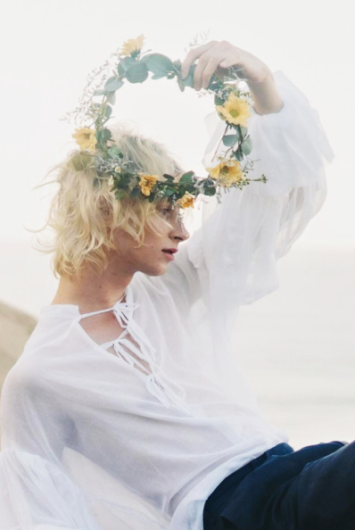 Blusa leggera con maniche ampie e volant, chiusa da laccetti. Partecipazioni come ieri ma con trasparenze di oggi. La sposa si riposa tutta in sangallo.